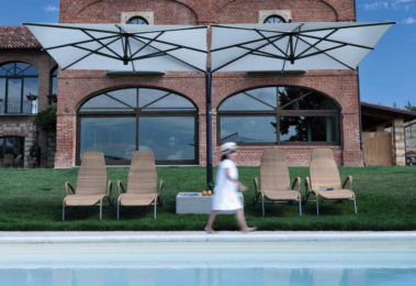 Struttura dotata di un minimo ingombro grazie all’unico palo centrale sul quale sono fissati i due ombrelloni. La sua particolare struttura rinforzata fa del Doppio il prodotto ideale per progetti contract (hotel, ristoranti…). Apertura a manovella indipendente per ogni ombrellone con possibilità di chiudere gli stessi anche in presenza di mobili sottostanti. Le stecche possono essere sostituite singolarmente senza smontare la struttura, la copertura può facilmente essere rimossa per manutenzione o sostituzione. Struttura in alluminio, viteria in acciaio inox. Stecca di fissaggio dell’ombrellone alla struttura per una migliore stabilità del prodotto in condizioni ventose. Il Doppio può essere fornito sia con basi da appoggiare su terreno sia con basi da interrare. Tutti i Prodotti sono disegnati e realizzati in Italia utilizzando i migliori materiali da esterno e garantendo una lunga durata anche nelle più gravose condizioni ambientali.