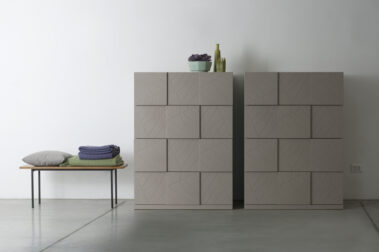 Collezione di contenitori ad ante caratterizzati dall’effetto scacchiera dei quadrati a due livelli di profondità. Un pezzo di architettura razionale che può essere personalizzato scegliendo tra le innumerevoli textures, i colori e le finiture della ricca “Surfaces collection” punto di forza e manifesto di unicità che identifica lo stile. La collezione offre molte possibilità di scelta nelle dimensioni, partendo dal modulo base di 30x30cm.