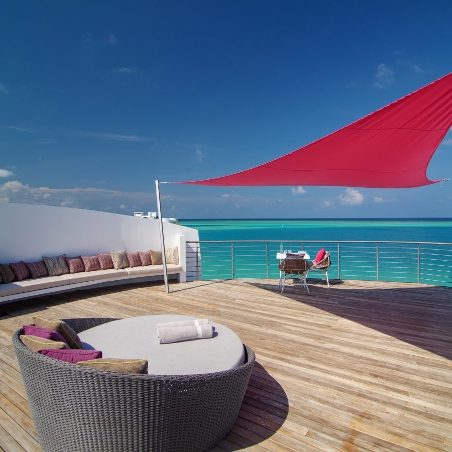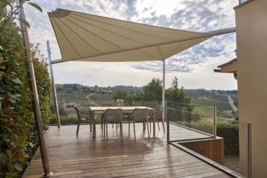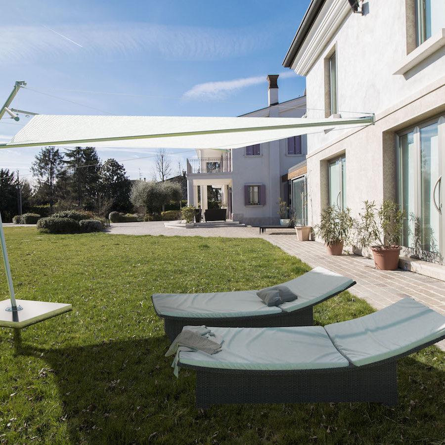 Kheope, vela ombreggiante fissa di ampie dimensioni appartenente alla gamma SAILS, esprime modernità ed assicura un’importante zona d’ombra, rappresentando una scelta innovativa per le coperture di domani. L’acciaio della struttura ed i materiali della vela fanno sì che la funzionalità sia assoluta ed il design leggero, moderno, essenziale. Kheope offre inoltre un’alta resistenza agenti atmosferici e salsedine, con possibilità di chiusura automatica con sensore vento. Il movimento è garantito dai cursori.